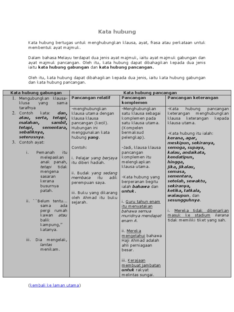 Contoh Ayat Kata Hubung Pancangan Keterangan. Ayat yang terbentuk menggunakan kata hubung. Contoh Kata Penghubung.
